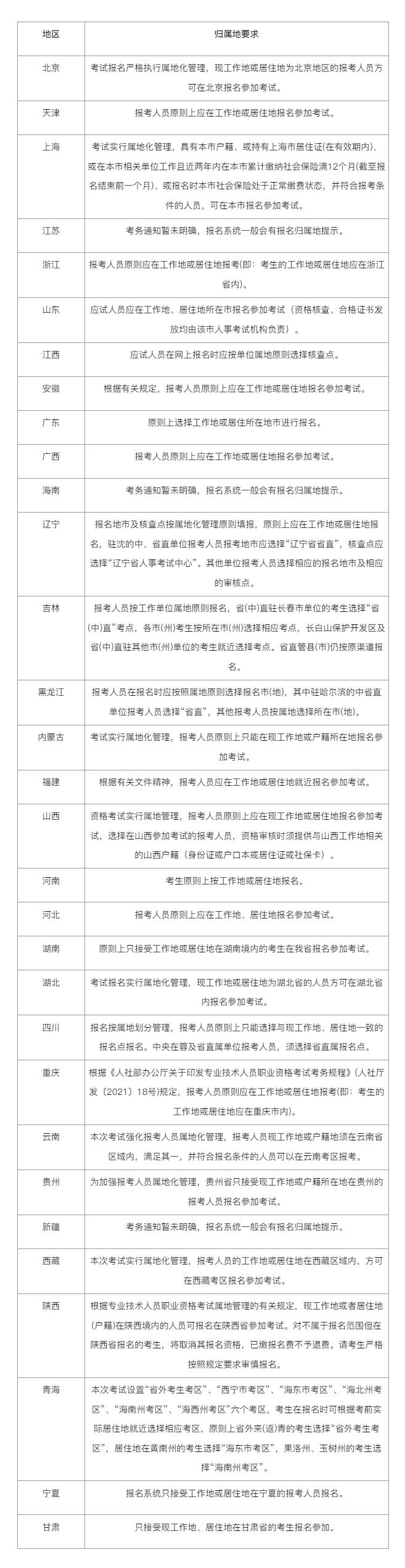 注意:各地区对不符合属地报名要求考生的处理结果以当地人事考试机构的考务通知为准。